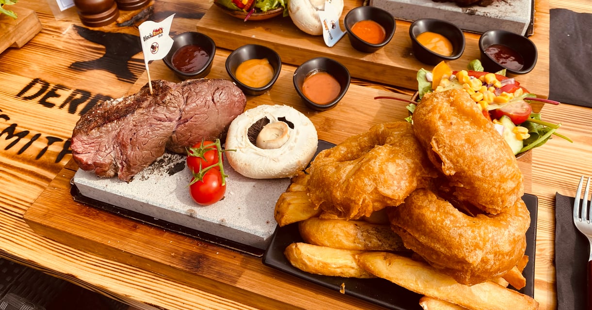 The Forge Black Rock Steakhouse, Blacksmiths Yard, Sadler Gate, offers only the best cuts of meat, locally sourced from award-winning Owen Taylor & Sons, and served on the famous Blackrock grill stone. Come and try the best steak in Derby.